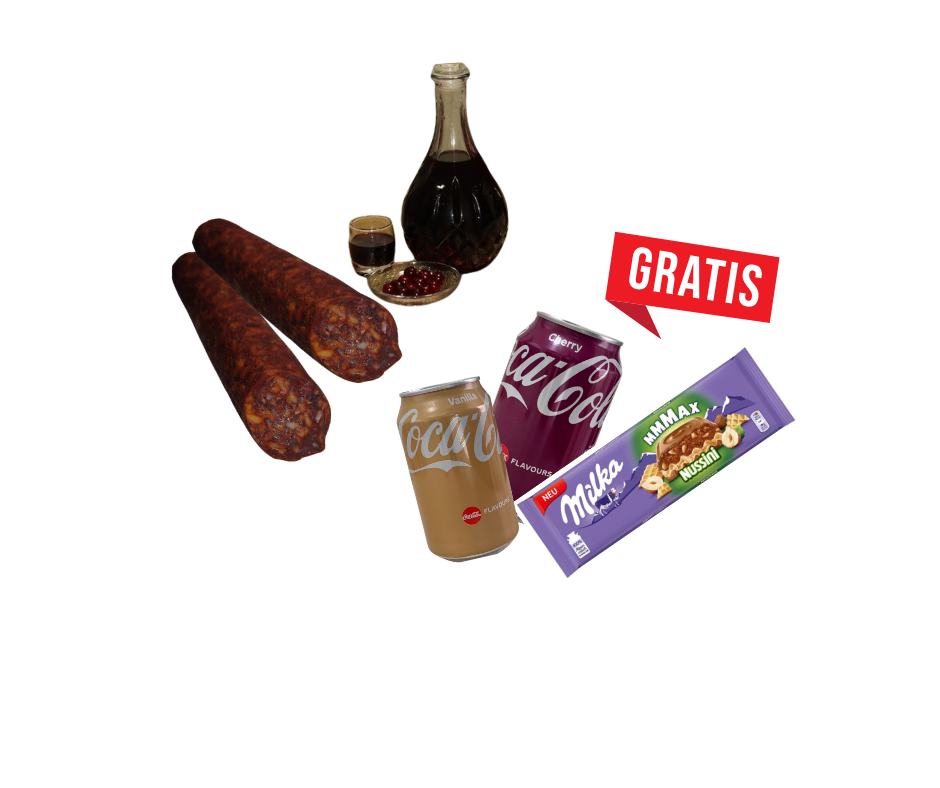 .Domaći kulen NAŠ & Liker od Višnje + GRATIS 1 x Coca Cola SPECIAL EDITION i Milka 0,300 g